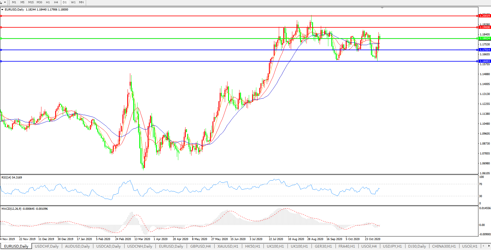 交易策略:1.1800上方看涨,目标1.1900、1.2000