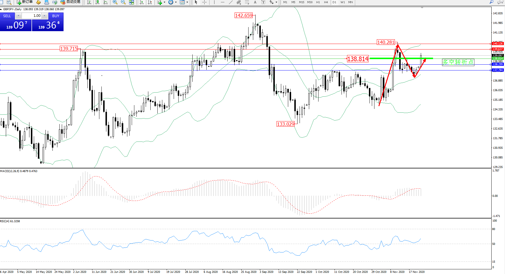 交易策略:138.814上方看涨,目标139.637、140.126