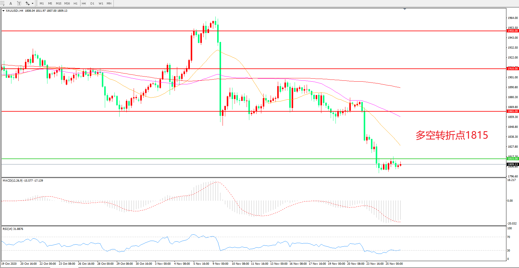 交易策略:在1815.00之下看跌,目标1766.00 1705.00