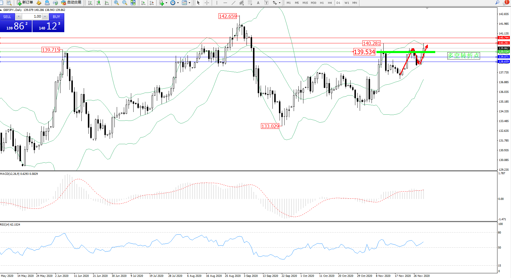 交易策略:139.534上方看涨,目标140.281、140.744