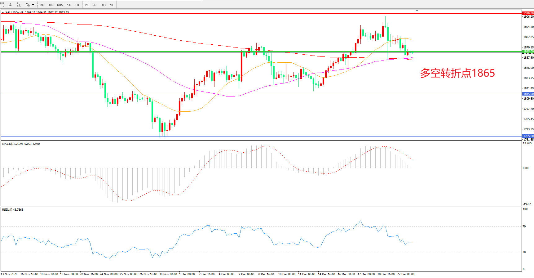 备选策略:在1865.00之下看跌,目标1815.00 1765.00