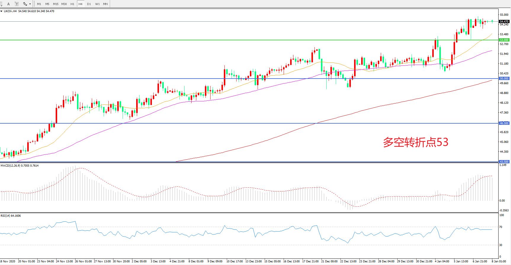 交易策略:  在53.00之上看涨,目标57.00      60.00