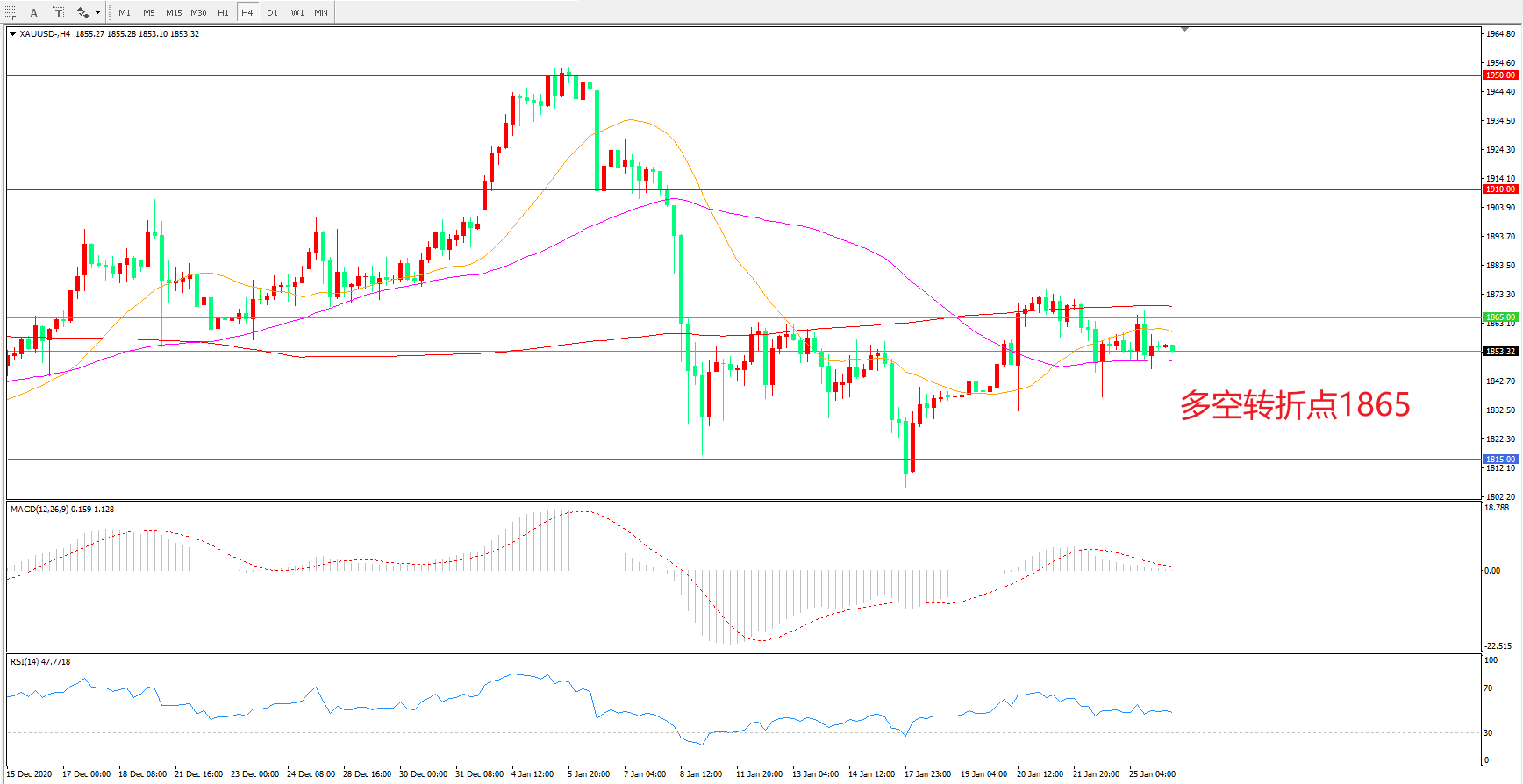 交易策略:在1865.00之下看跌,目标1815.00    1765.00