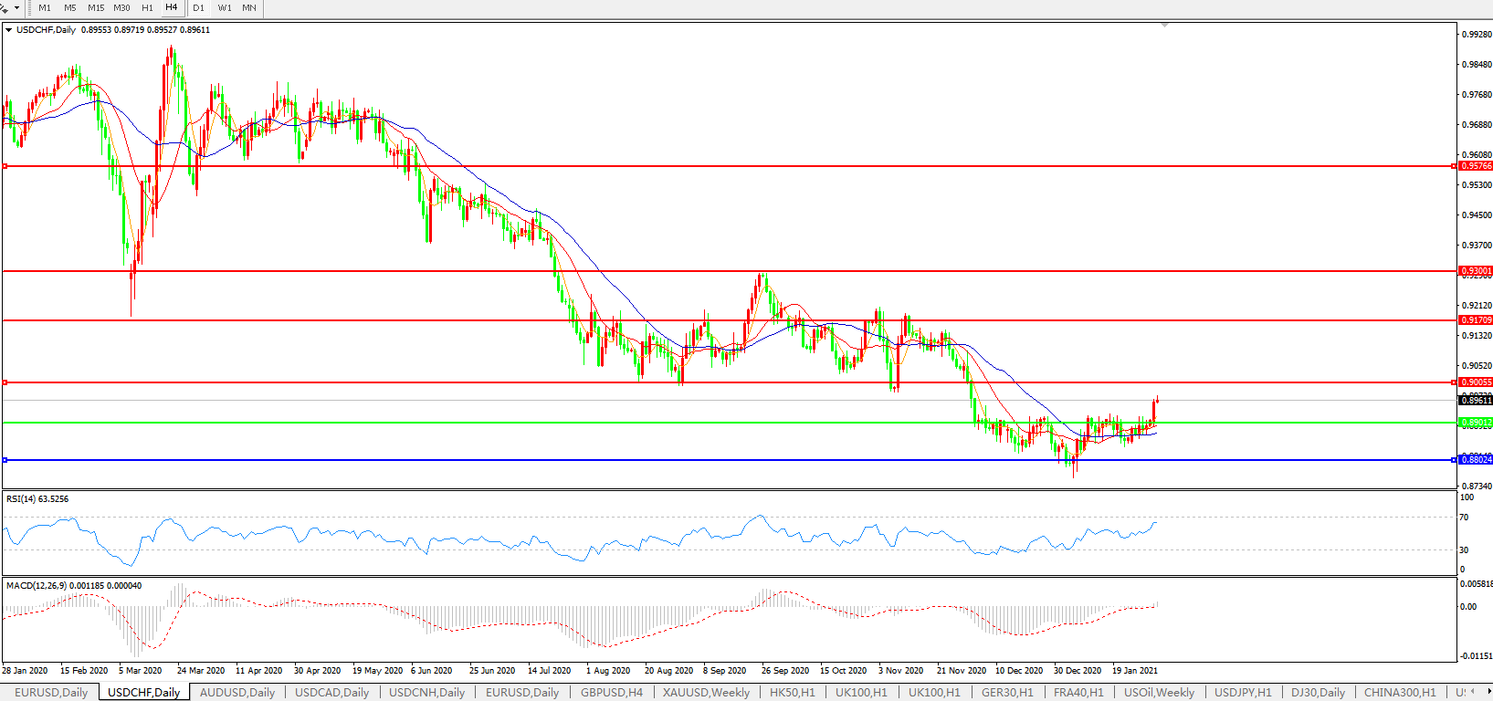 交易策略:0.8900上方看涨,目标0.9000、0.9170