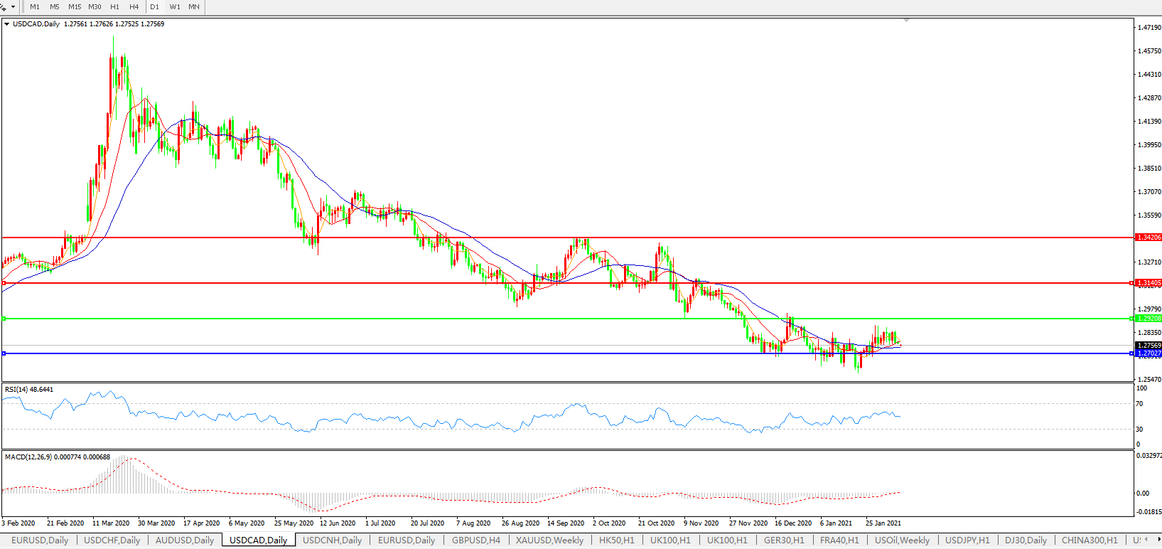美元兑加元USDCAD    日线图: