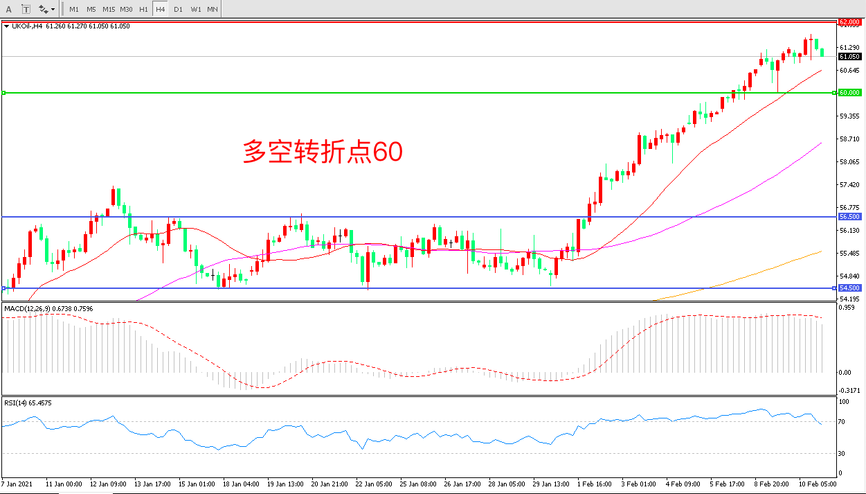 交易策略: 在60.00之上看涨,目标64.00 67.00