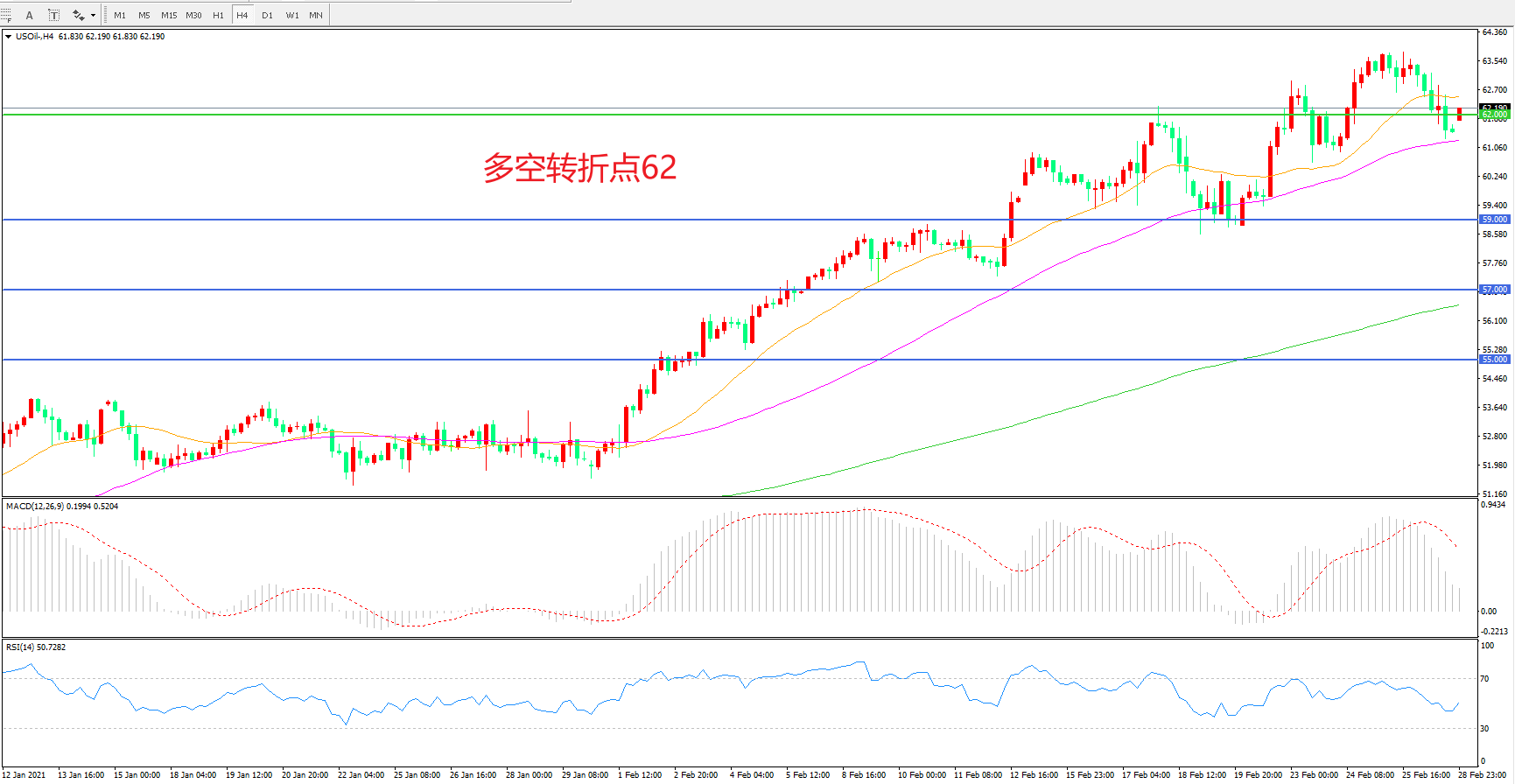多空转折点:62.00