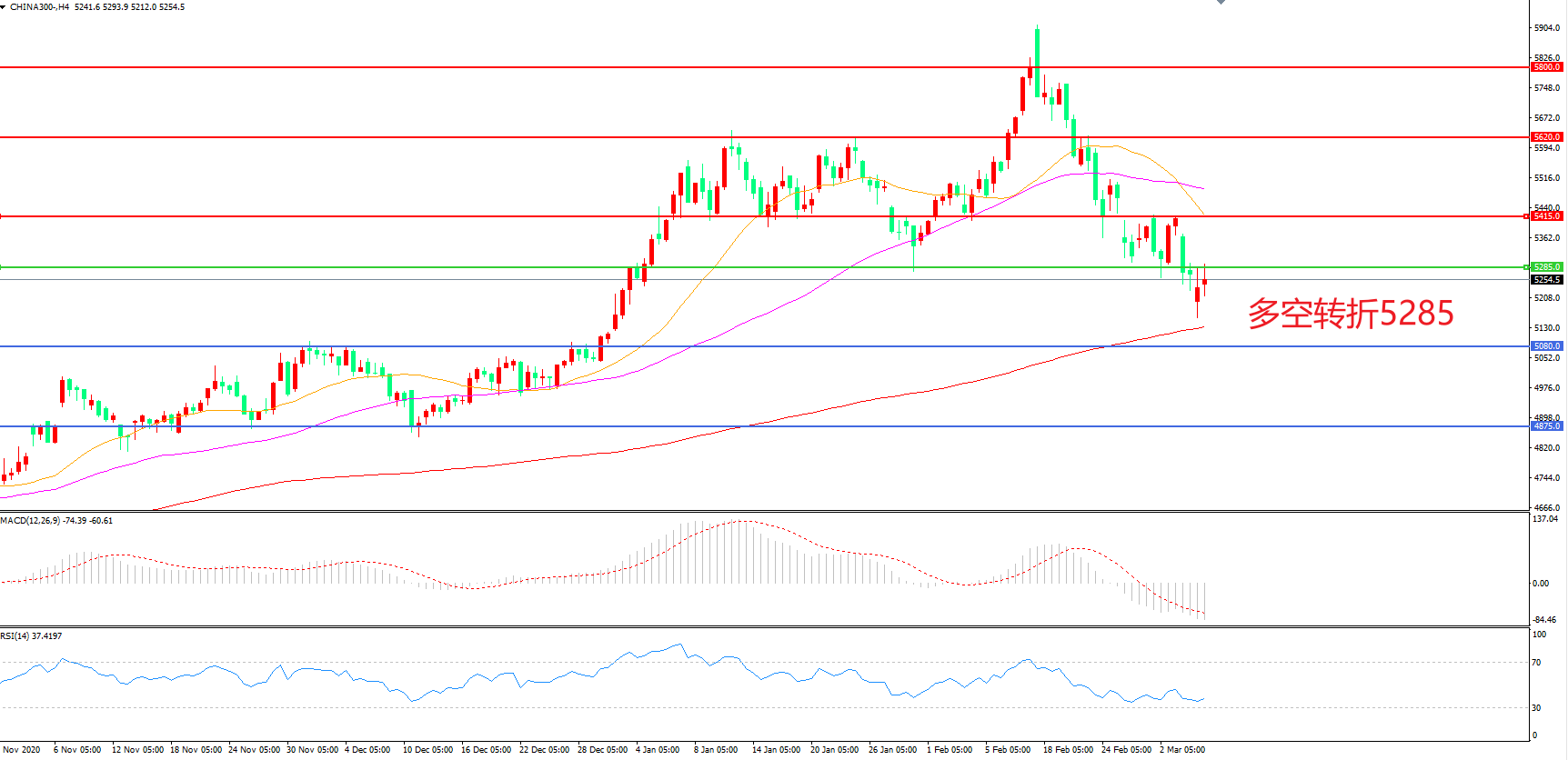 多空转折点:5285.00