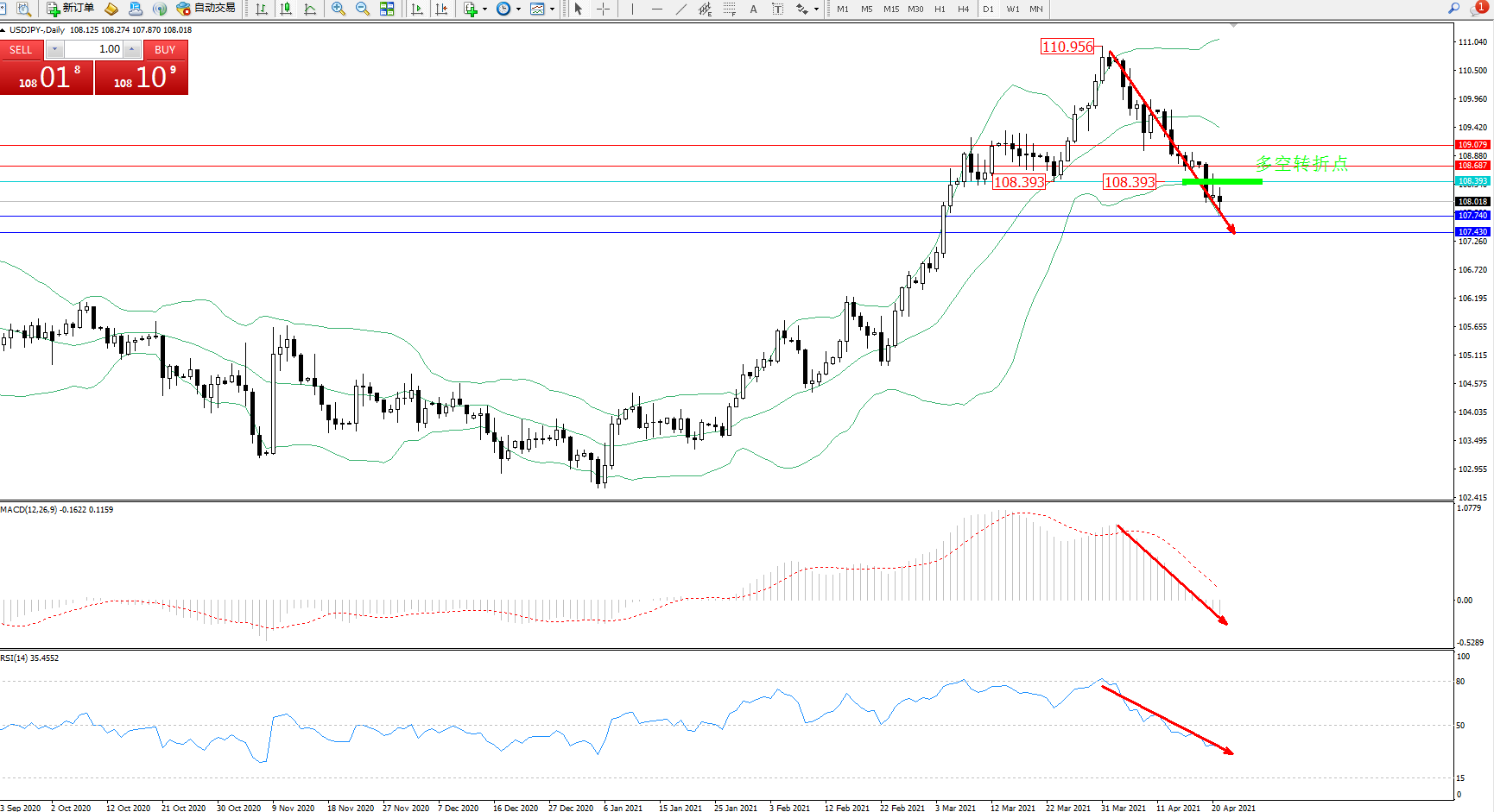 多空转折点:108.393