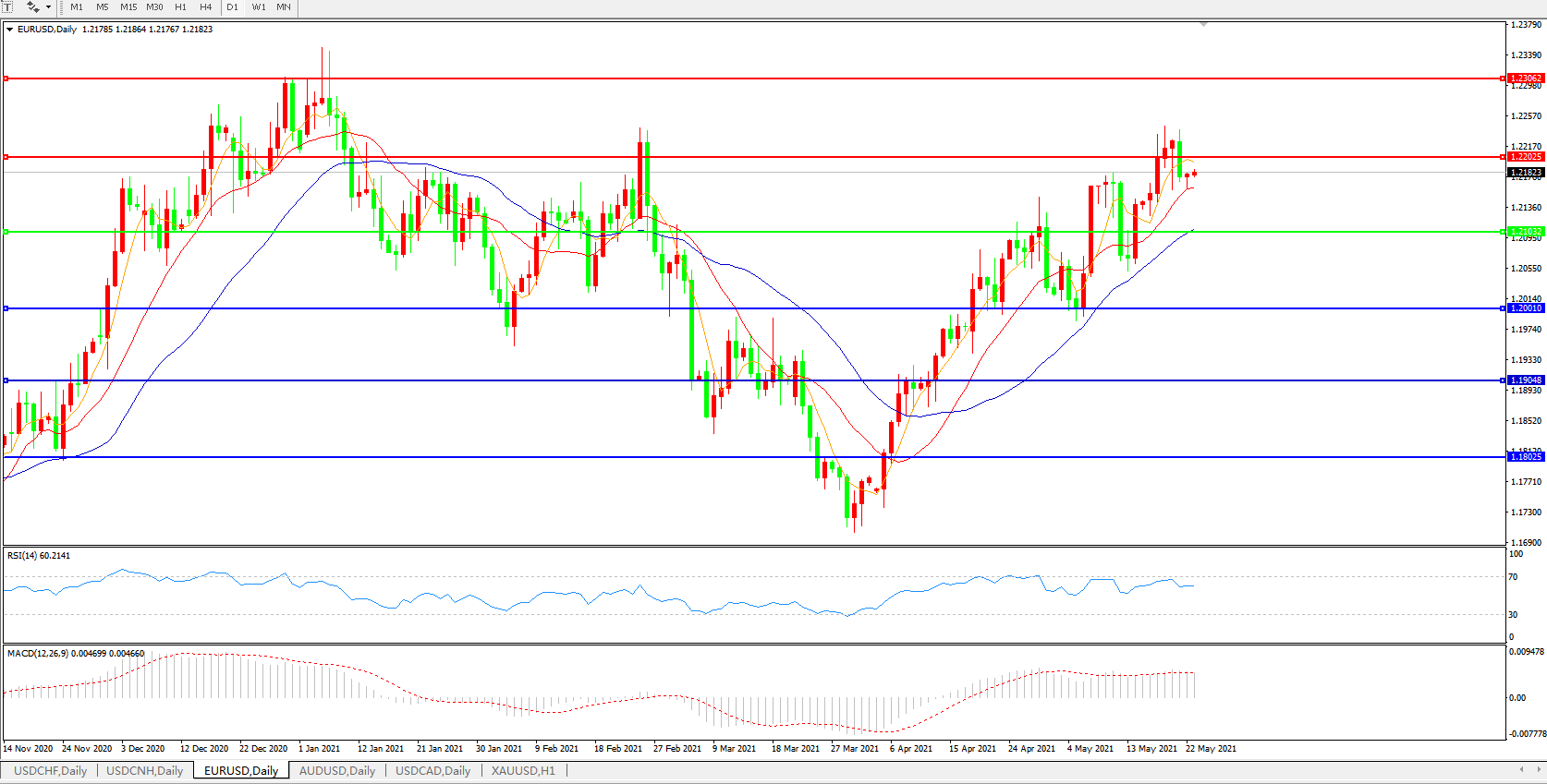 欧元兑美元EURUSD   日线图: