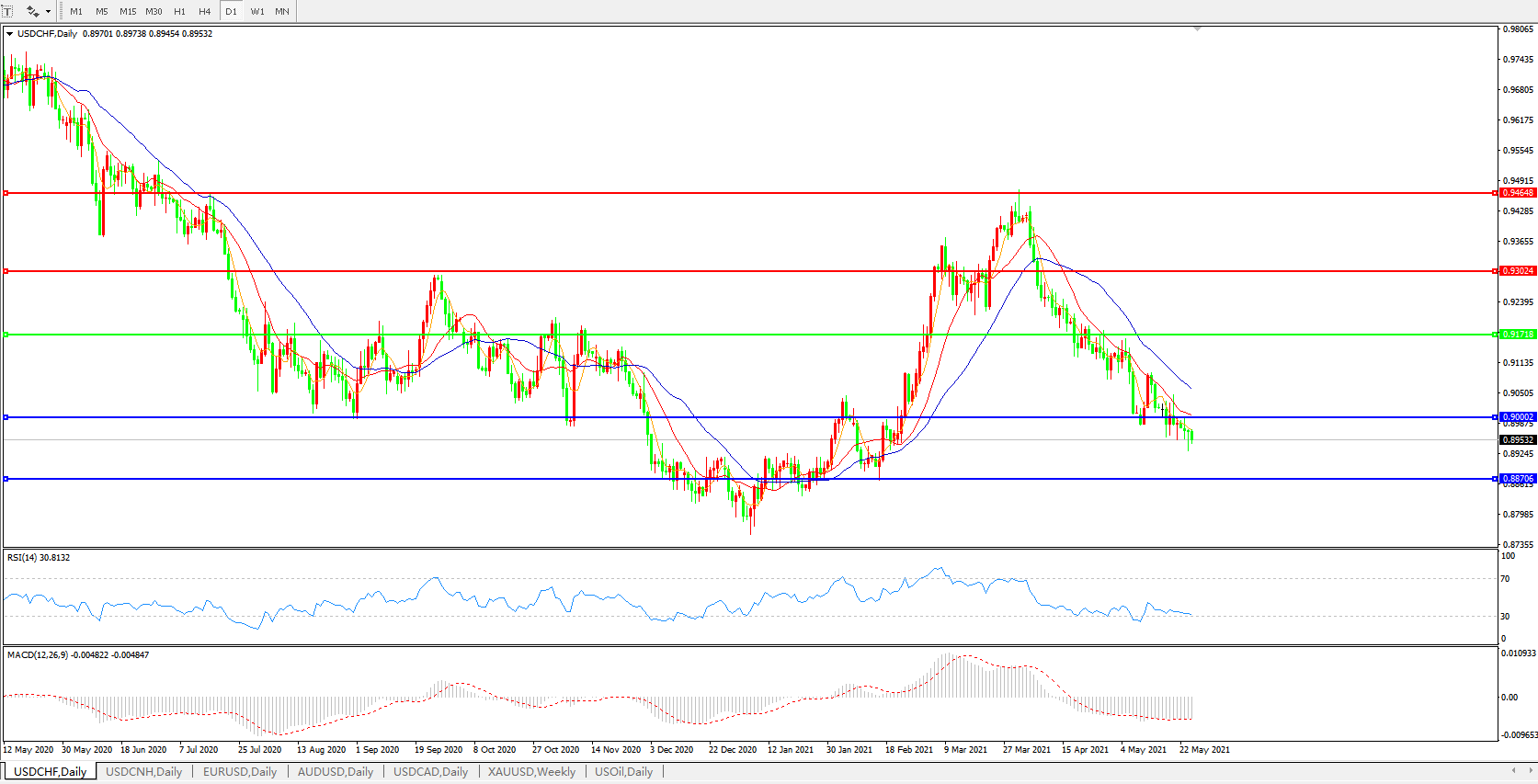 美元兑瑞郎USDCHF    日线图: