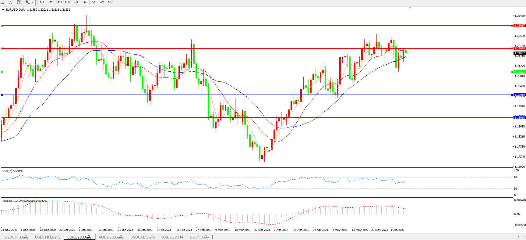 交易策略:1.2100上方看涨,目标1.2200、1.2300