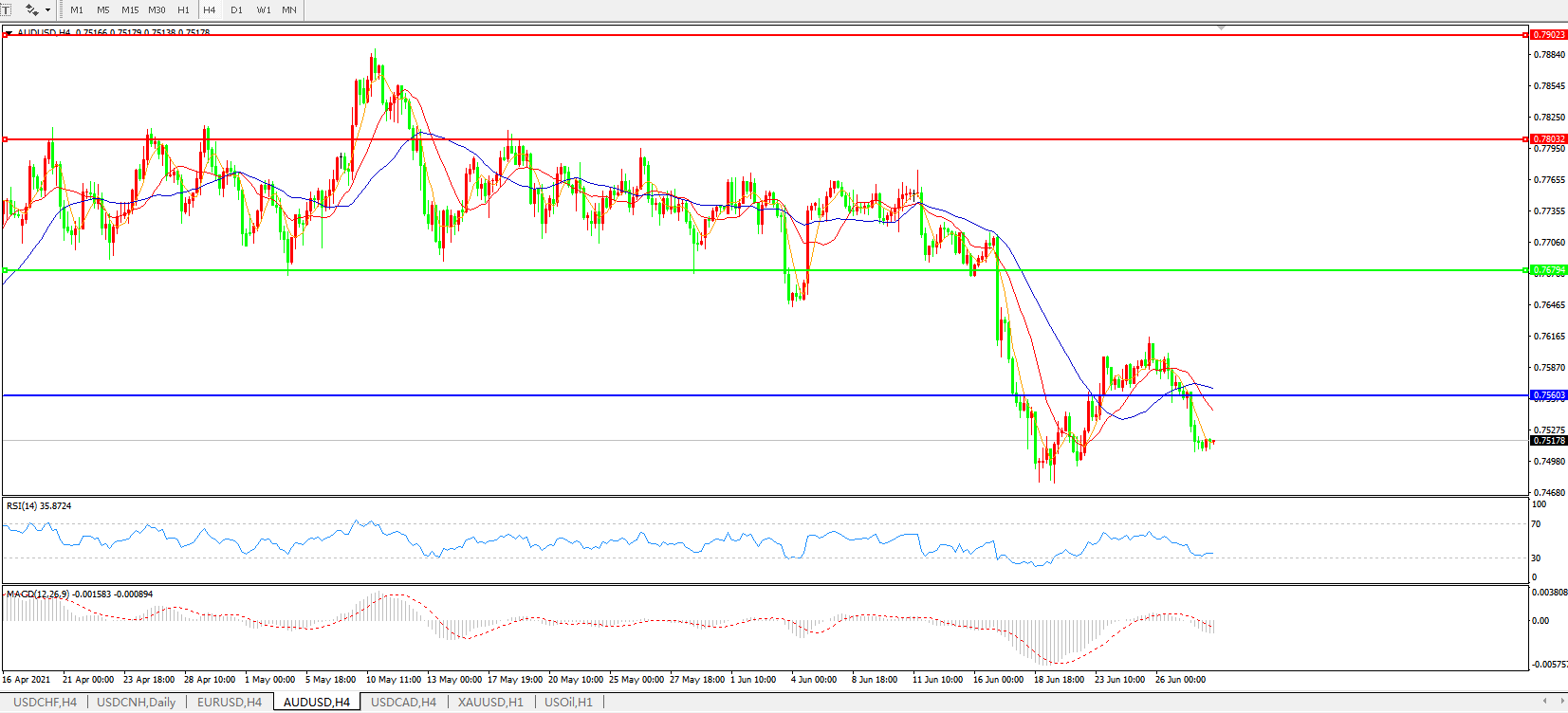 AUDUSD 4小时图: