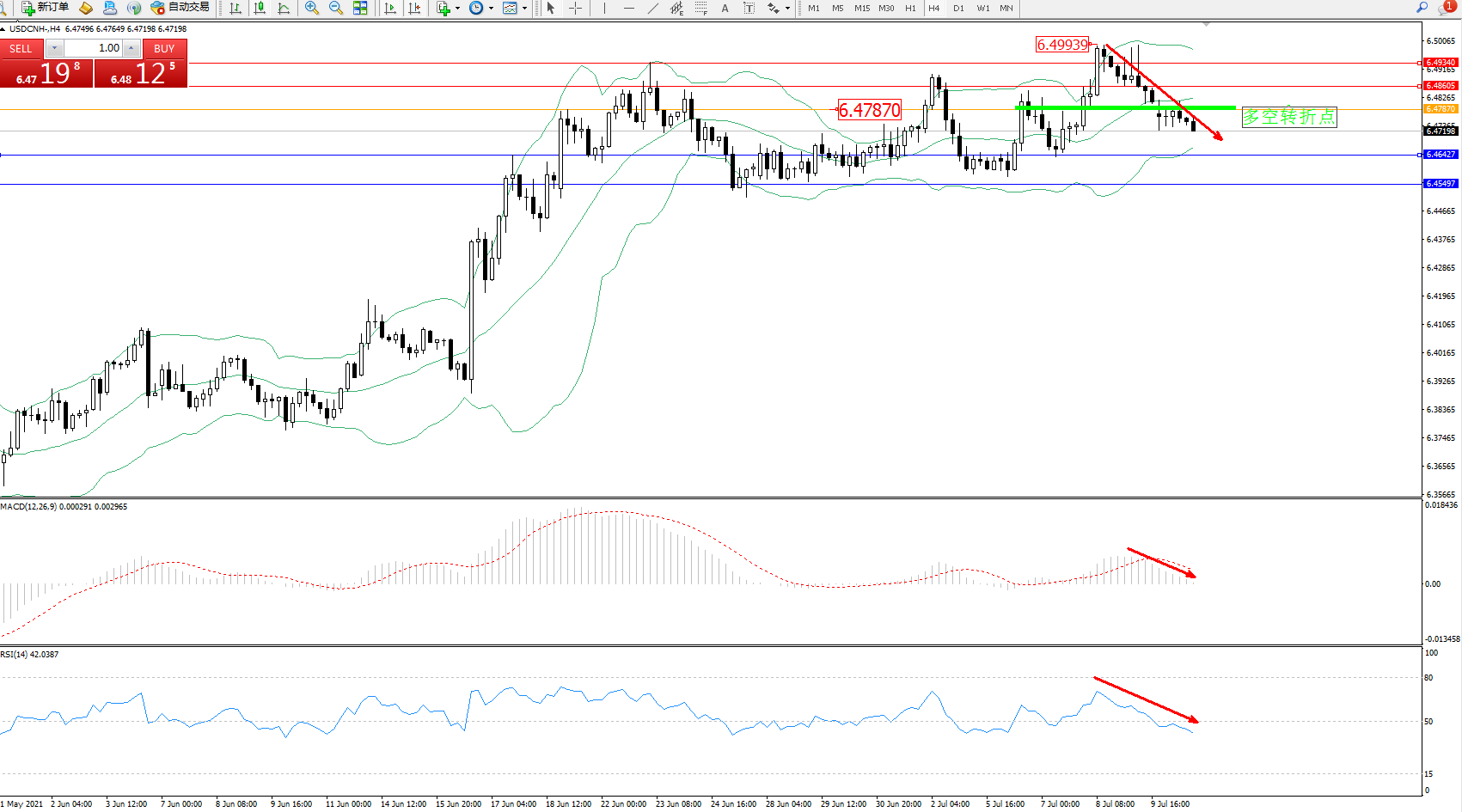 交易策略:6.47870下方看跌,目标6.46427、6.45497