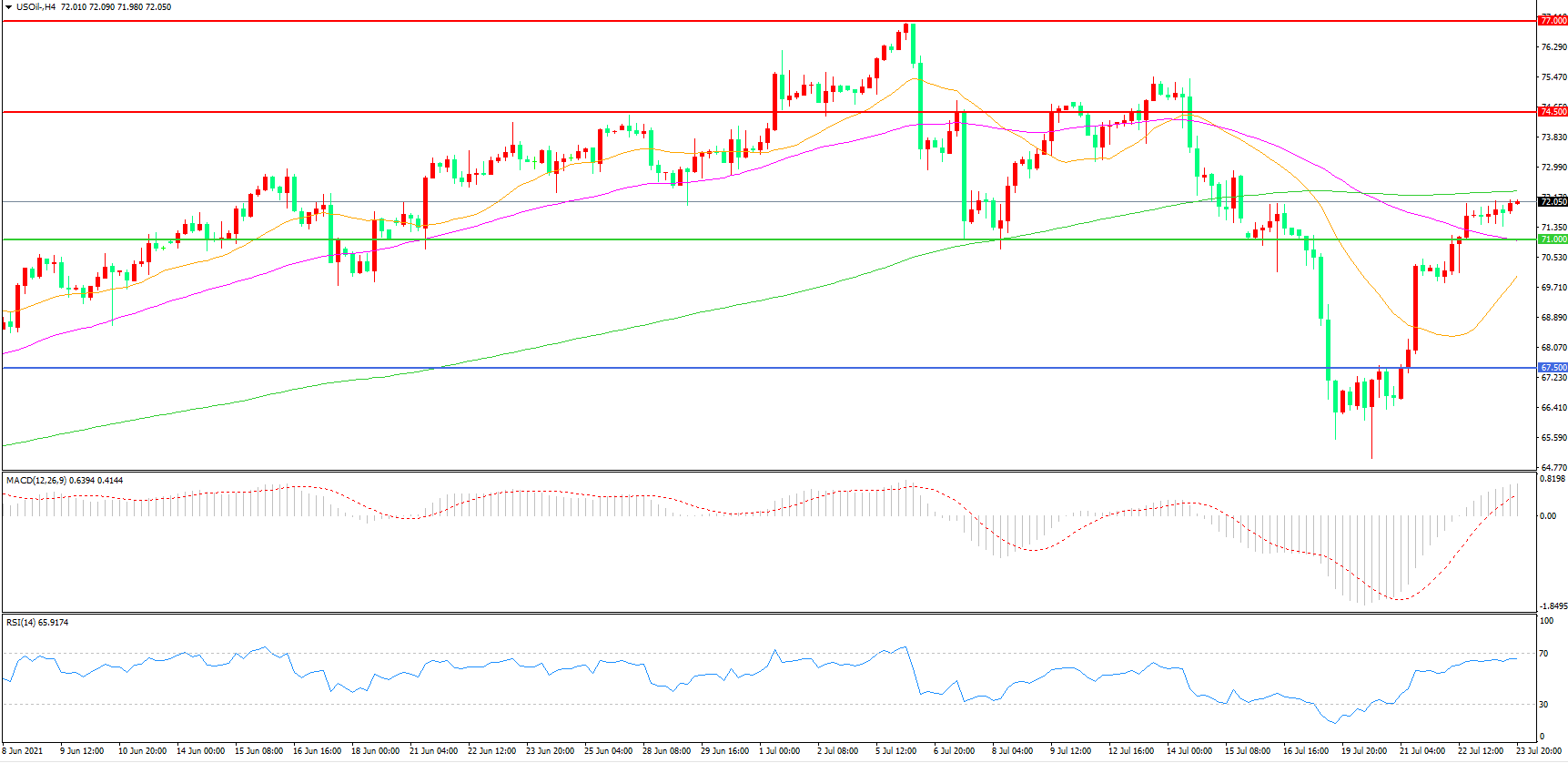 交易策略:在71.00之上看涨,目标74.50 77.00