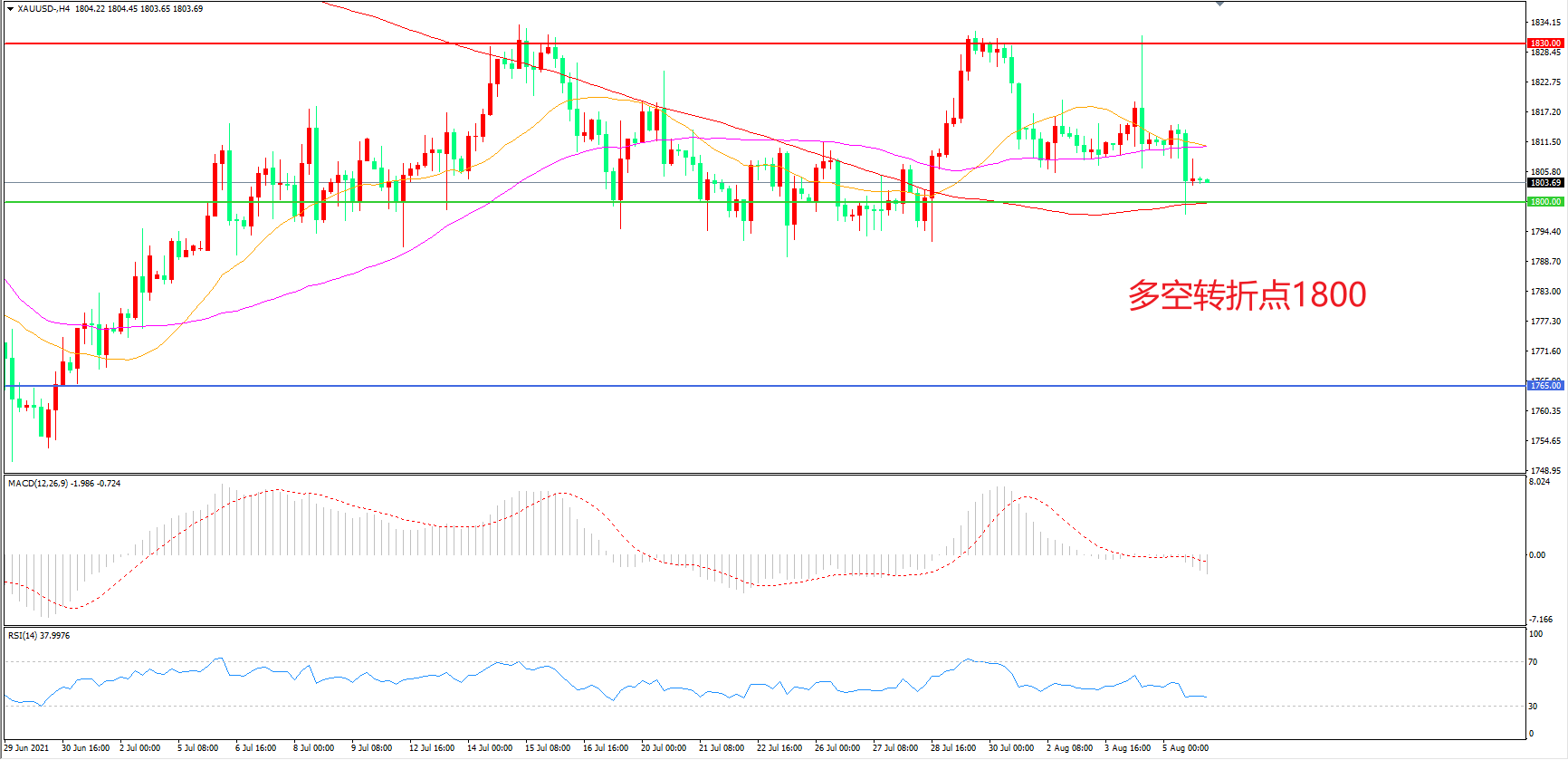 交易策略:  在1800.00之上看涨,目标1830.00       1860.00