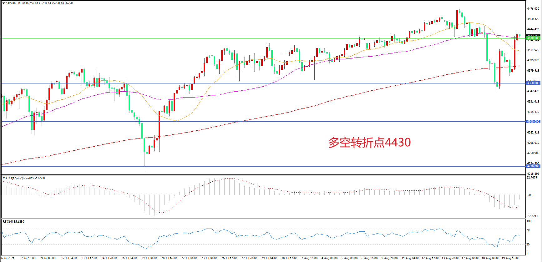 备选策略:在4430.00之下看跌,目标4360.00    4300.00