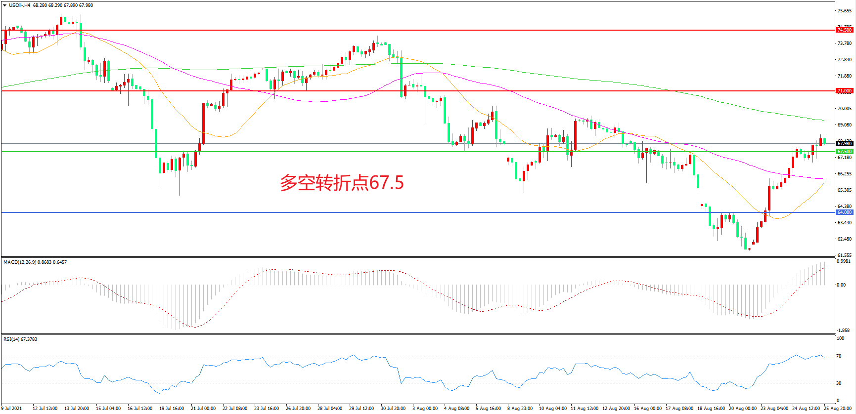 交易策略:在67.50之上看涨,目标71.00                74.50