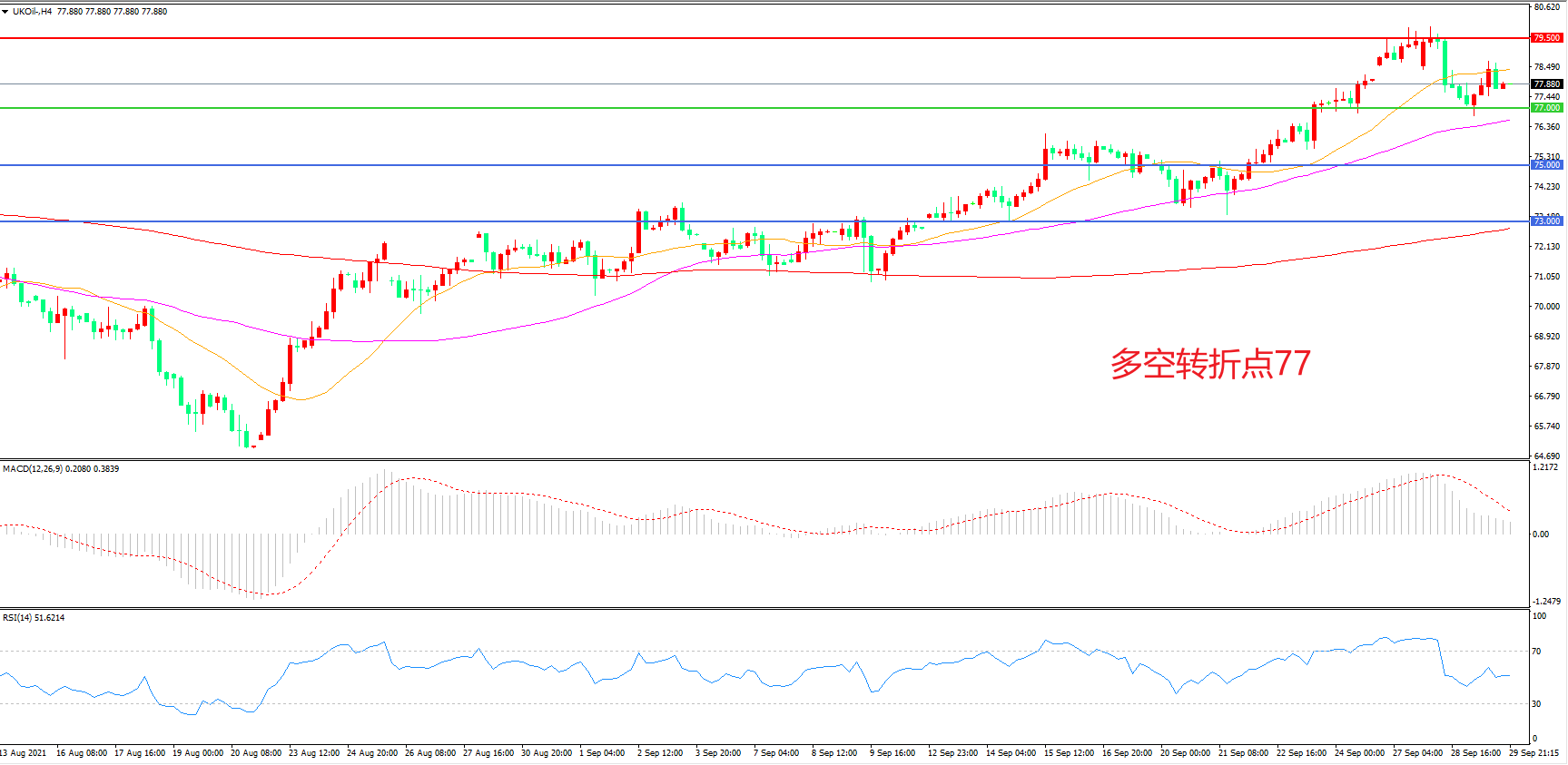 多空转折点:77.00