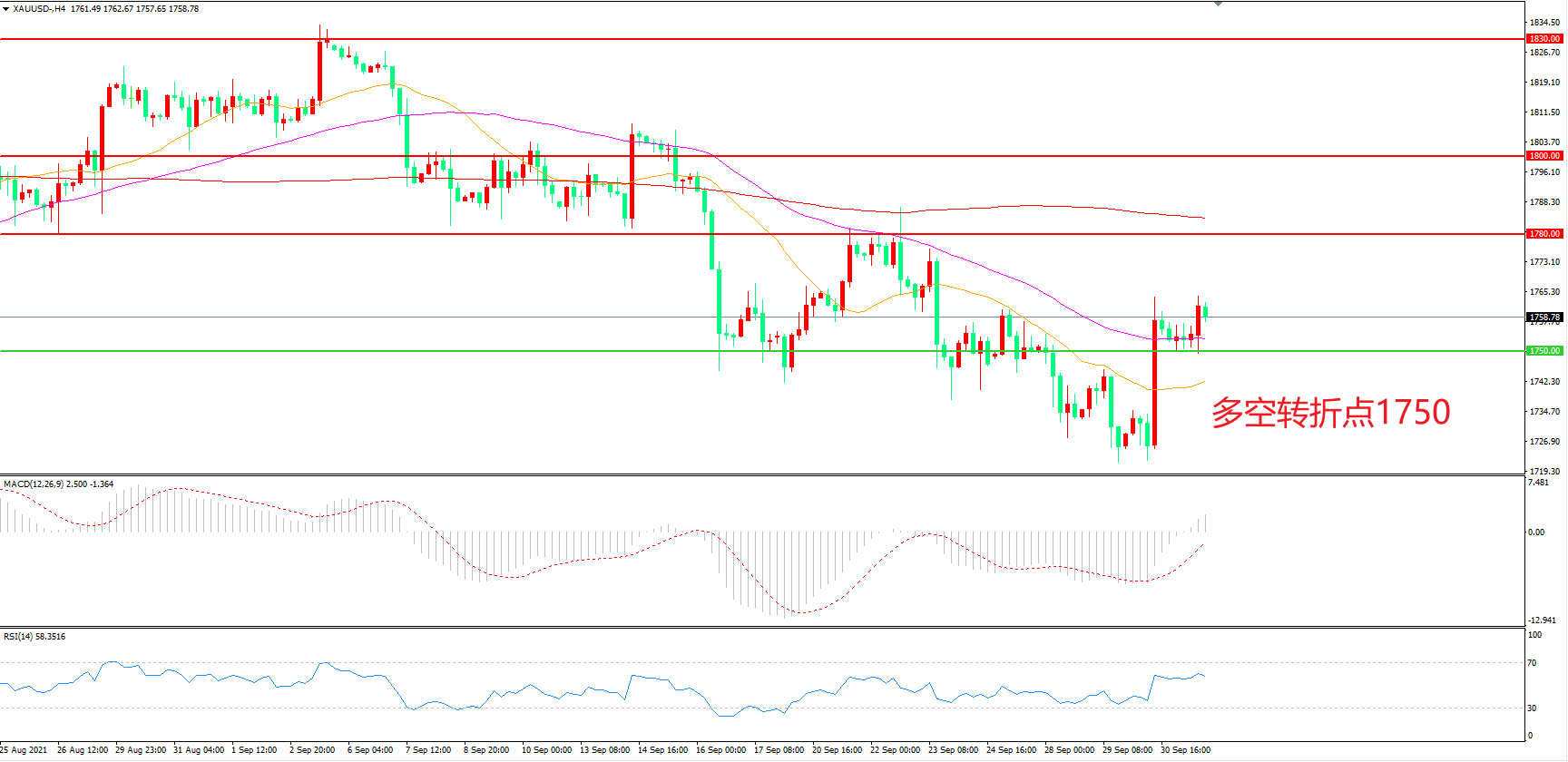 多空转折点:1750.00