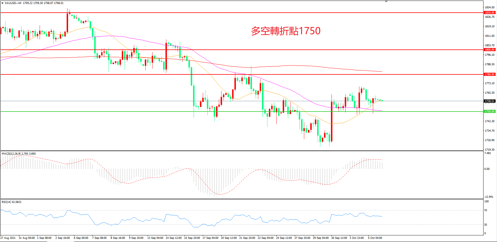 多空转折点:1750.00