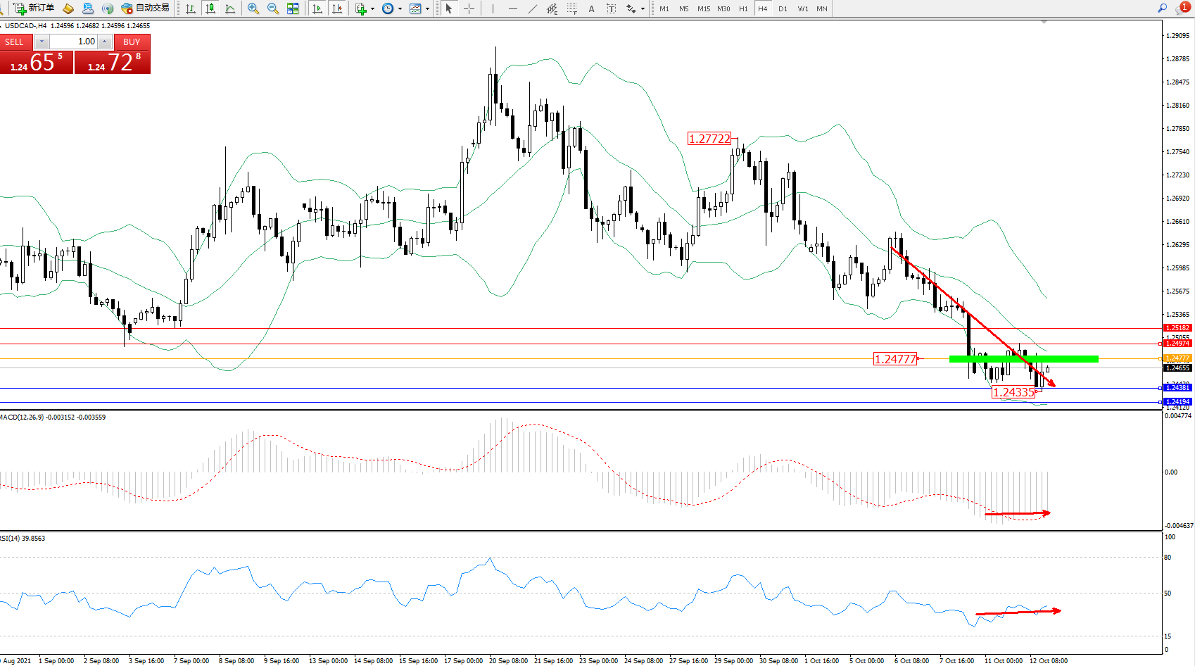 美元加元USDCAD——日K线图显示: