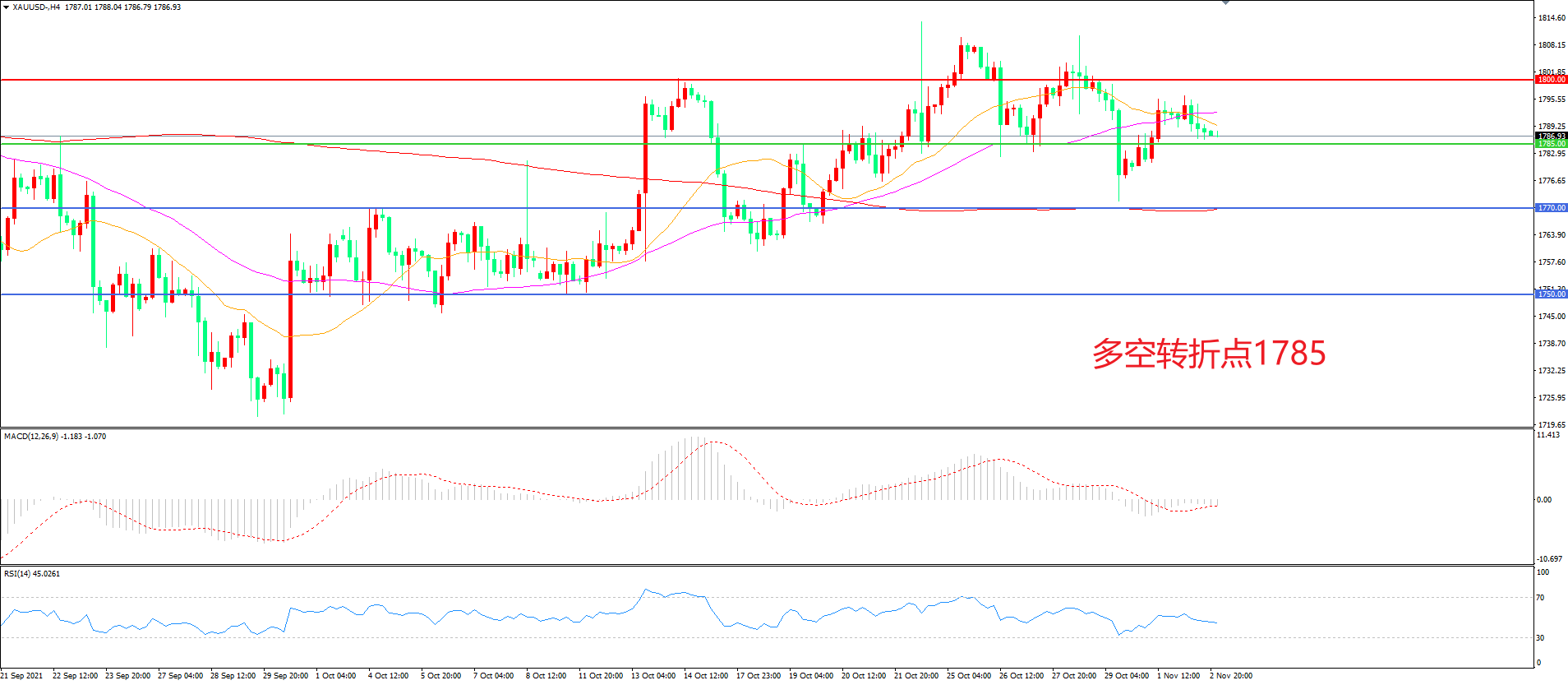 多空转折点:1785.00