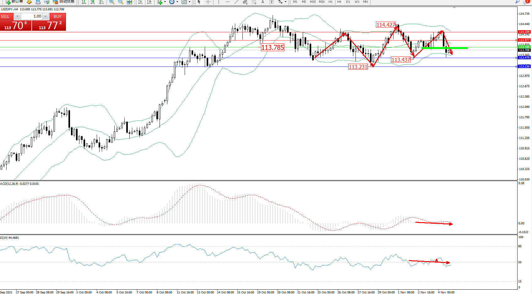 交易策略:113.785下方看跌,目标113.479、113.230