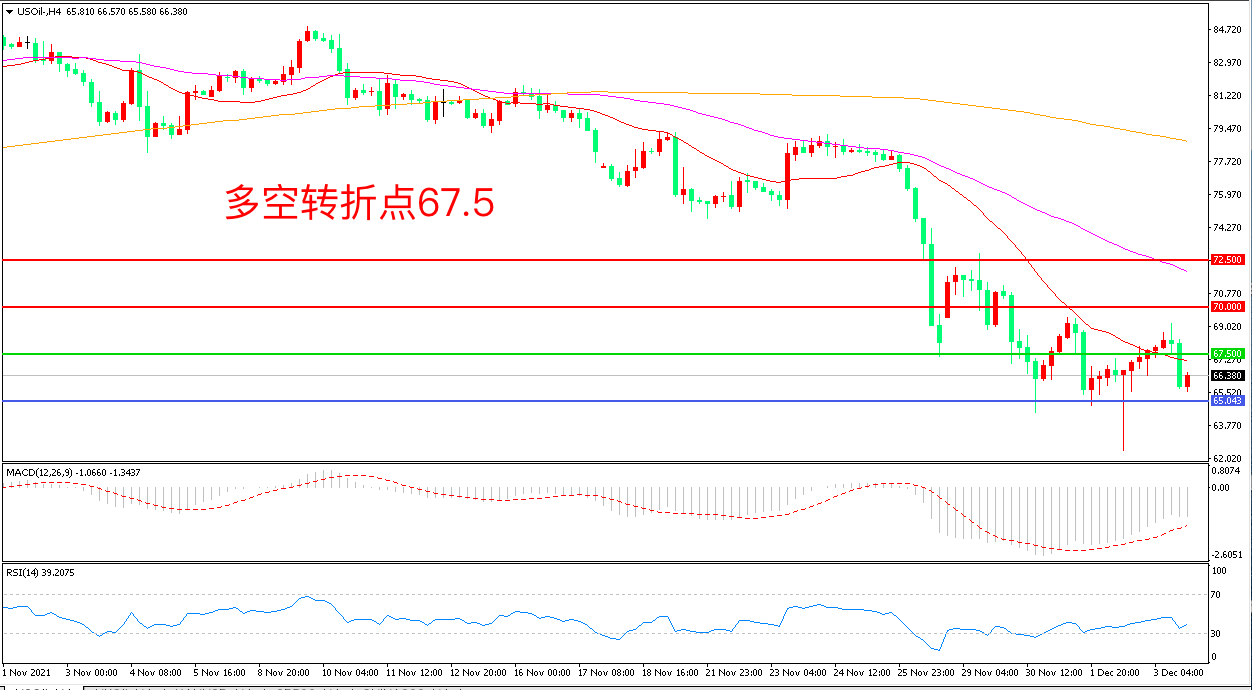 交易策略: 在67.50之下看跌,目标65.00        62.00