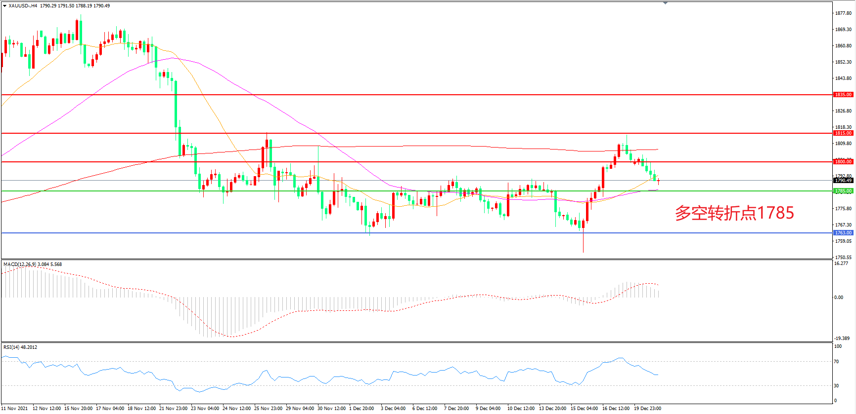多空转折点:1785.00