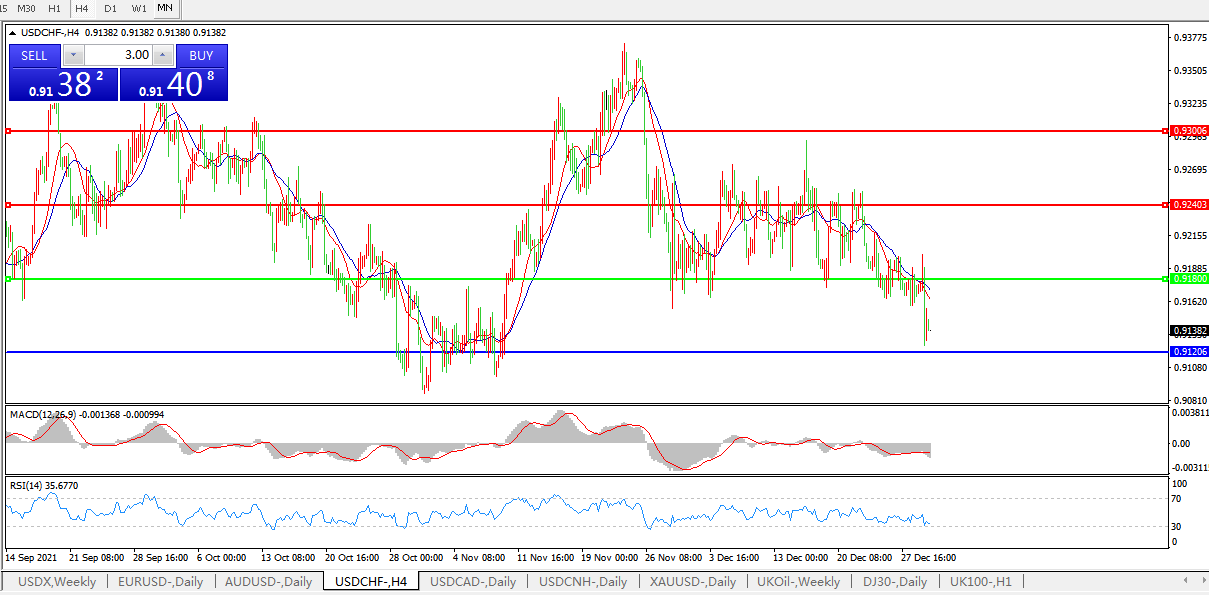 美元兑瑞郎USDCHF 4小时图: