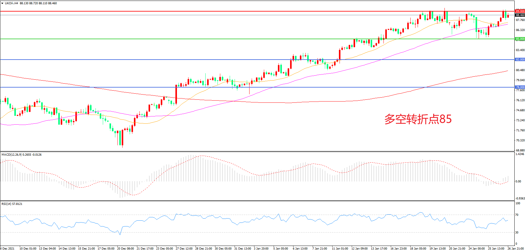 交易策略:在85.00之上看涨,目标89.00 93.00