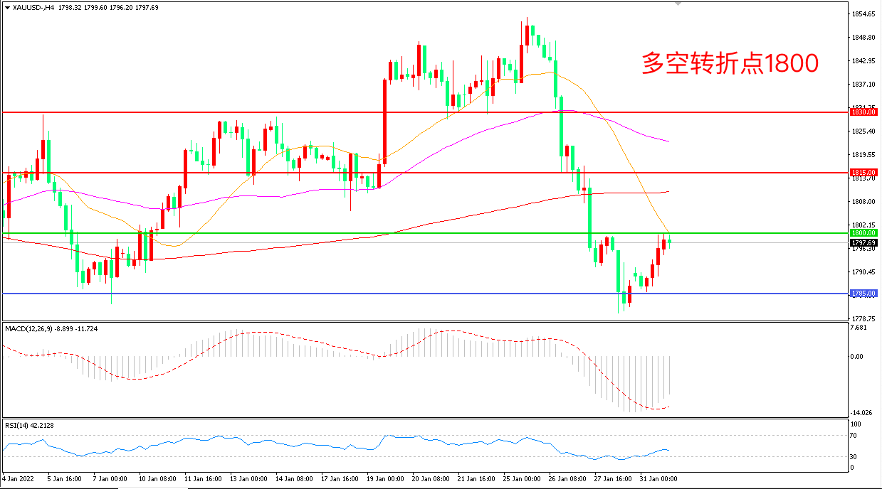 交易策略:在1800.00之上看涨,目标1815.00       1830.00