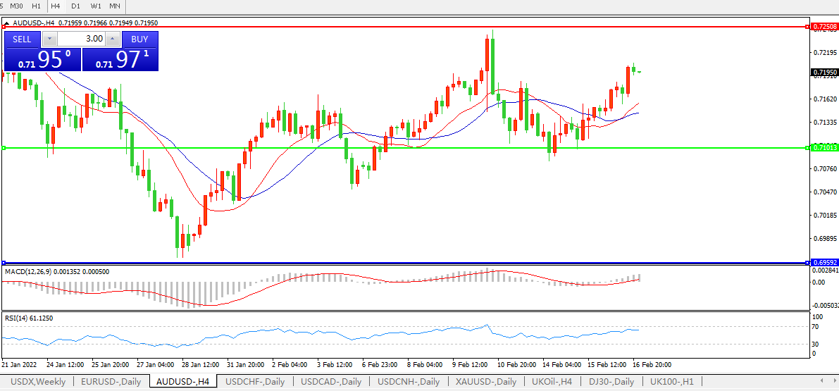 交易策略:0.7100上方看涨,目标0.7250、0.7400