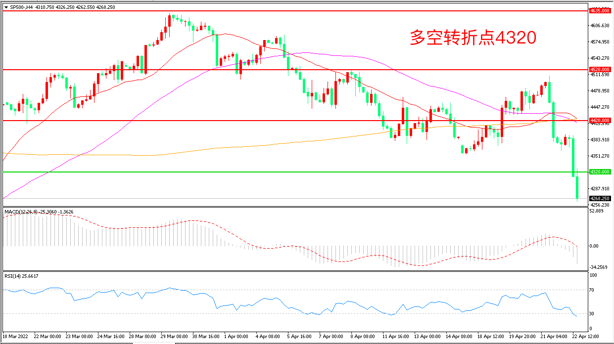 上周五(4月22日),在美联储释放强烈鹰派行动信号和部分企业财报逊色的打击下,标普500再度迎来重挫,大幅下行后收报4268.25点。面对美联储的“彻底转鹰”和主席鲍威尔迄今为止最激进的抑制通胀方式,市场正在消化众多不确定性带来的冲击。
