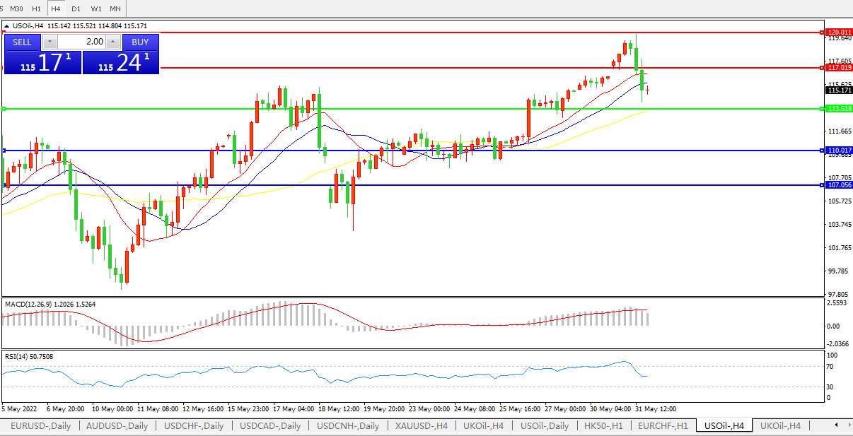 美国原油USOIL 4小时图