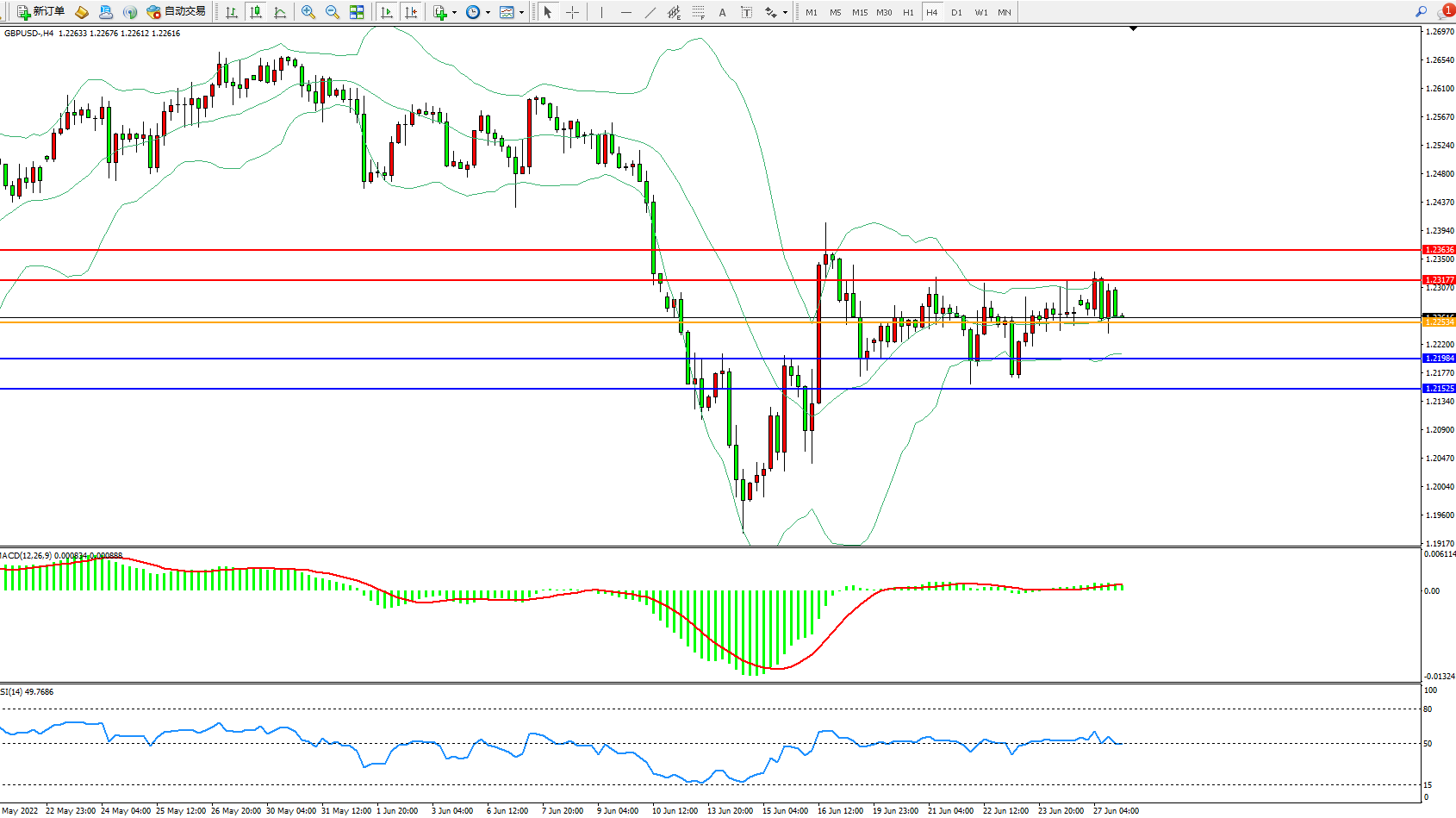交易策略:1.22534上方看涨,目标1.23177、1.23636