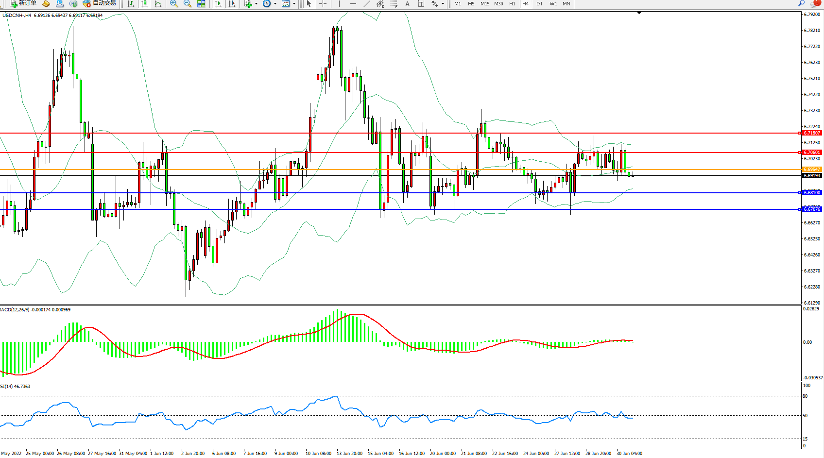 备选策略:6.69547上方看涨,目标6.70601、6.71807