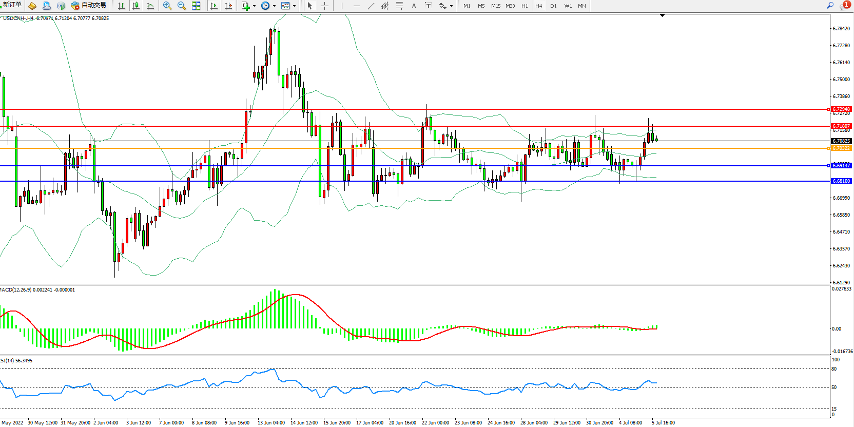 交易策略:6.70322上方看涨,目标6.71807、6.72948