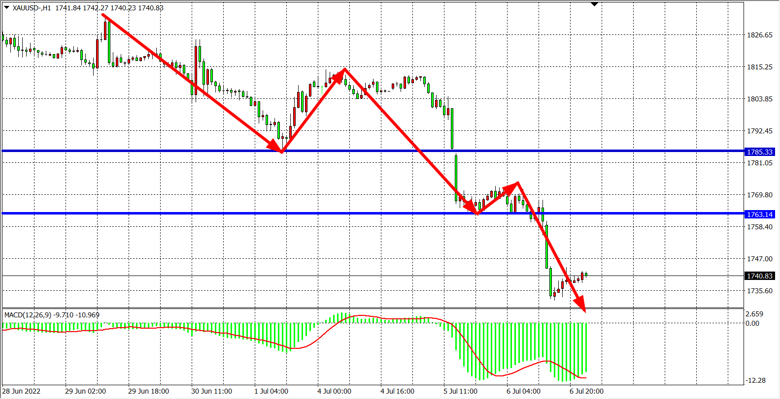 交易策略:在1763.00之下看跌,目标1730.00          1700.00