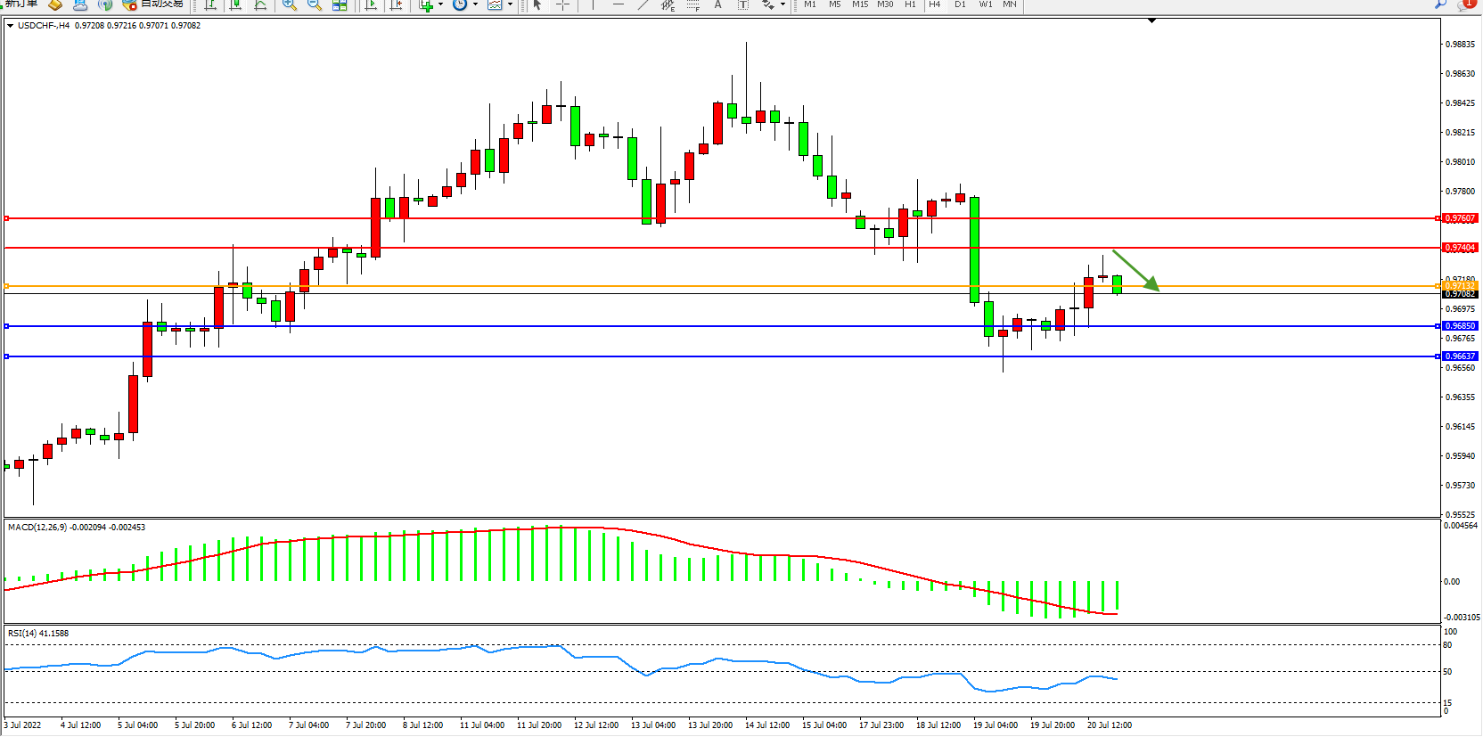 美元瑞郎USDCHF——4小时K线图显示:
