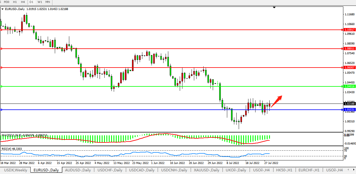 欧元兑美元本周几乎持平于1.0210,尽管欧元区7月CPI年率初值续创历史新高至8.9%,但欧洲能源危机料限制欧洲央行进一步大幅加息空间,这限制了欧元反弹。