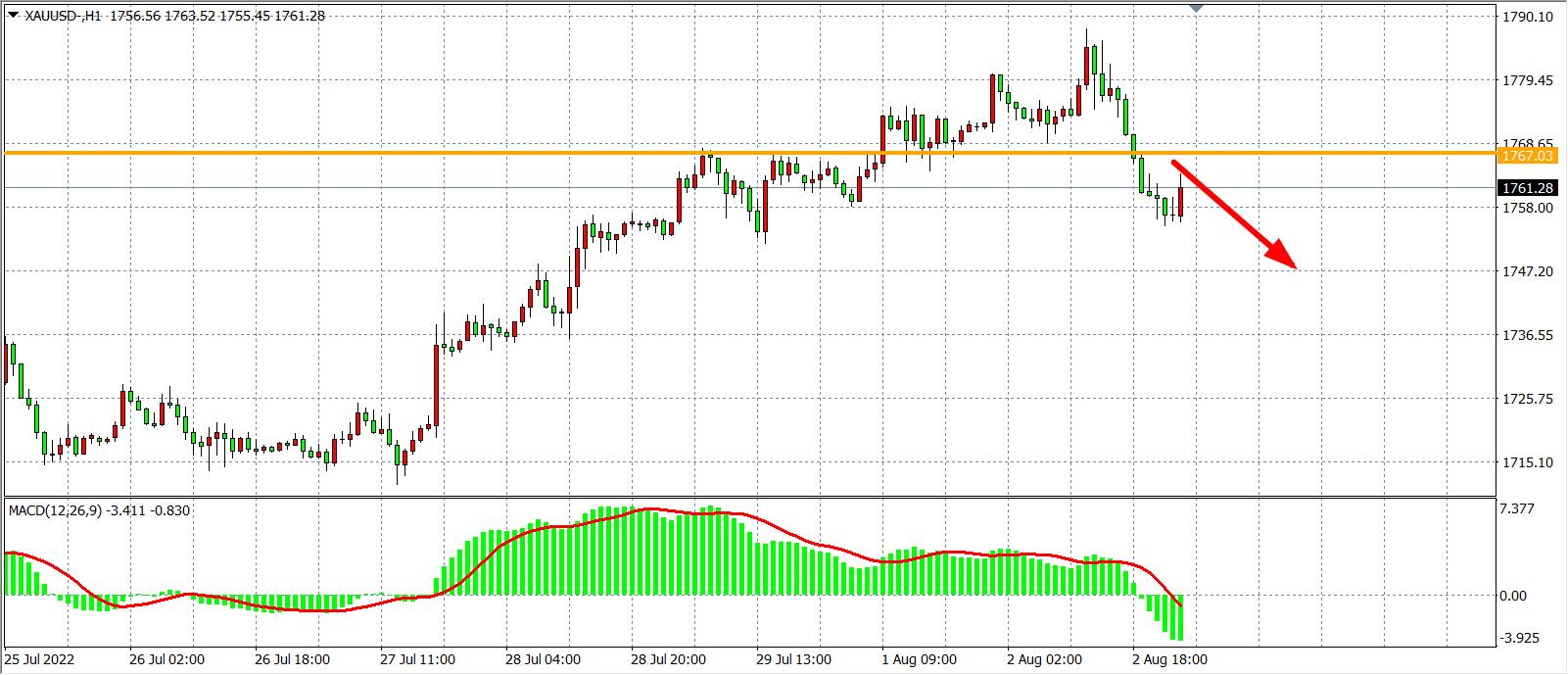 备选策略:在1767.00之下看跌,目标1750.00 1740.00