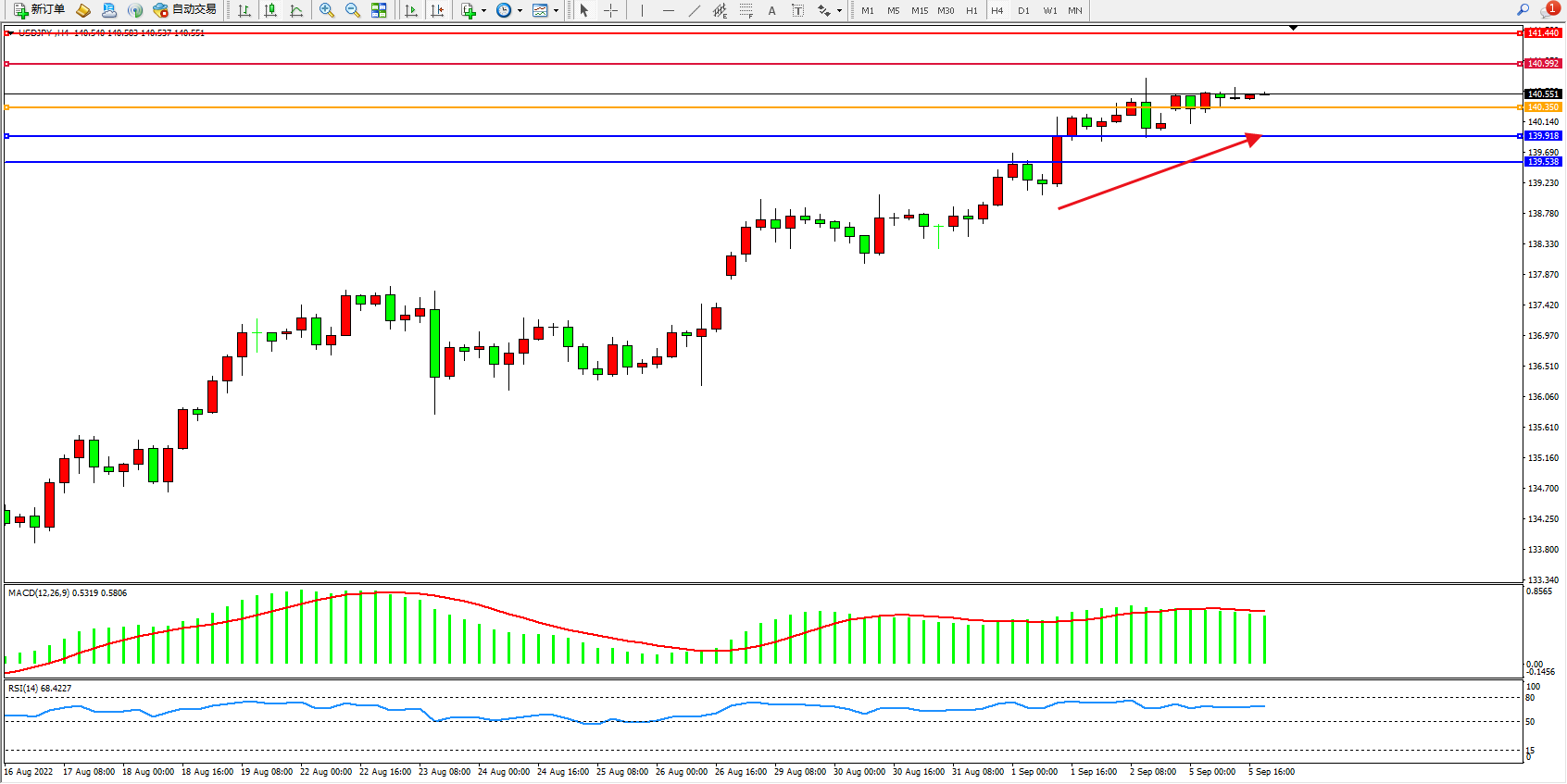 多空转折点:140.350