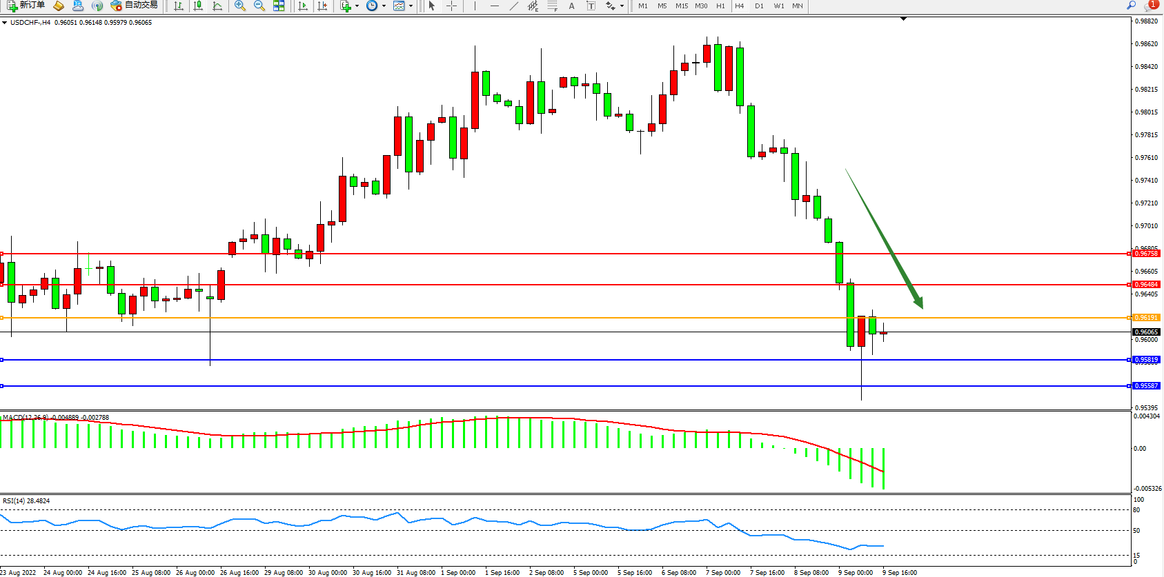 美元瑞郎USDCHF——4小时K线图显示: