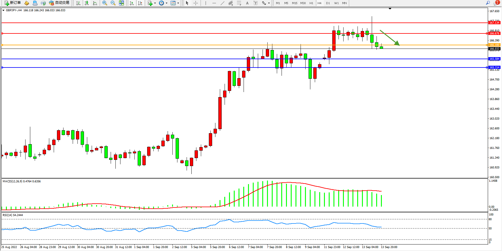 4小时图看:多头阶梯式震荡上移,高位短期弱势整理,MACD指标处于多头区域维持整理,RSI指标处于50均衡线上側窄幅整理;