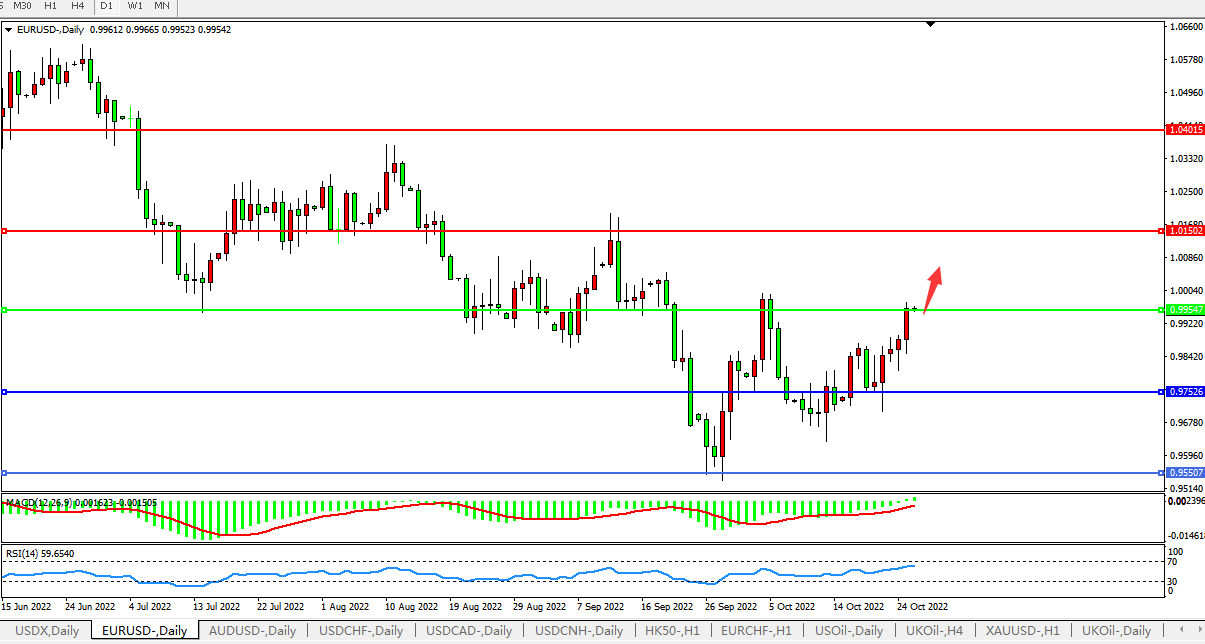 交易策略:0.9950上方看涨,目标1.0150、1.0400