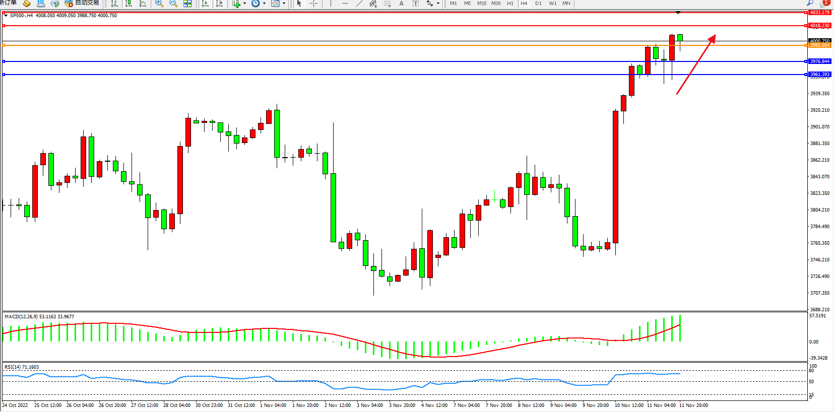 标普SP500——4小时K线图显示: