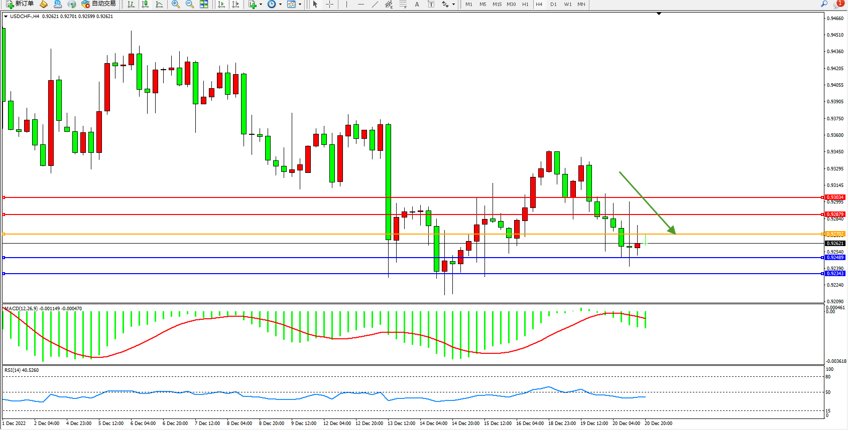 美元瑞郎USDCHF——4小时K线图显示: