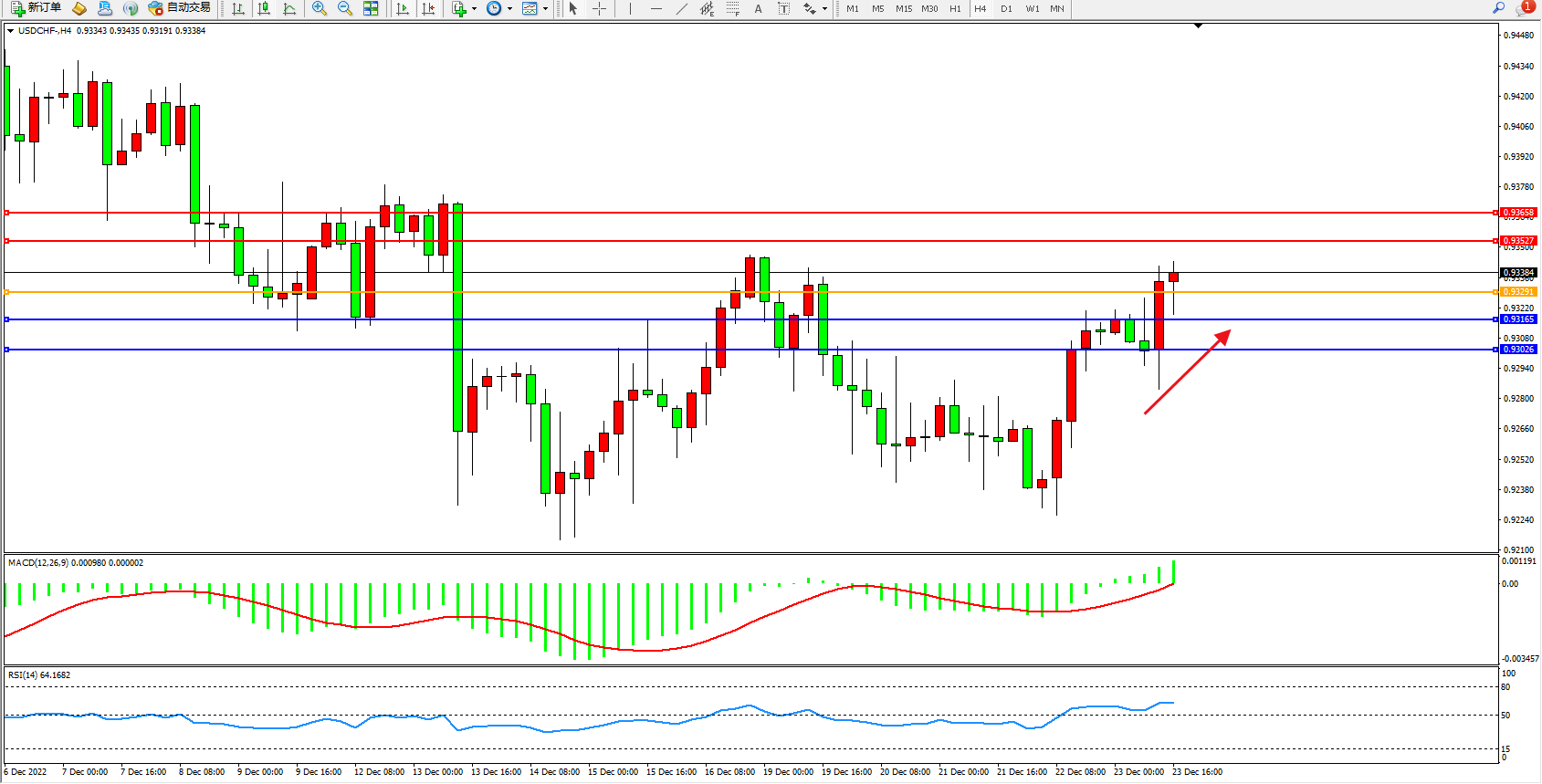美元瑞郎USDCHF——4小时K线图显示: